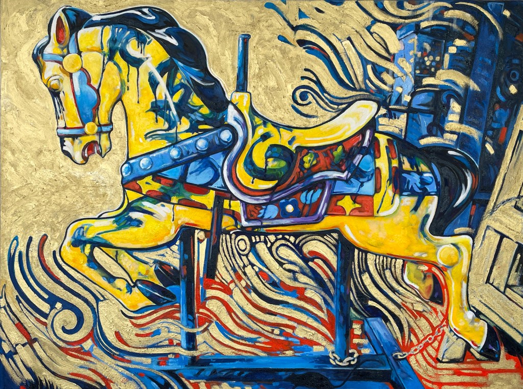Horse, Washington Heights, 2024, oil on canvas, 30″ x 48″ inches