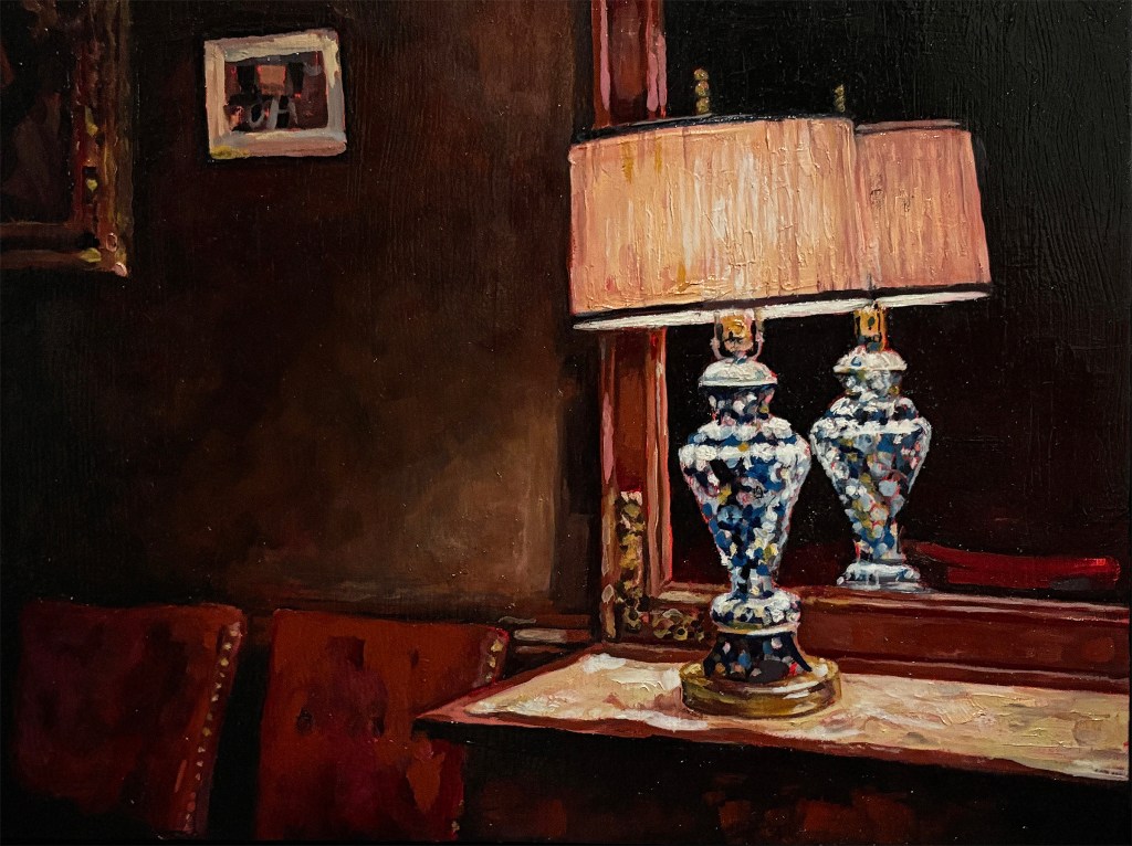 Jimmy’s Corner Bar, 2025, oil on panel, 4″ x 4″ inches (sold)
