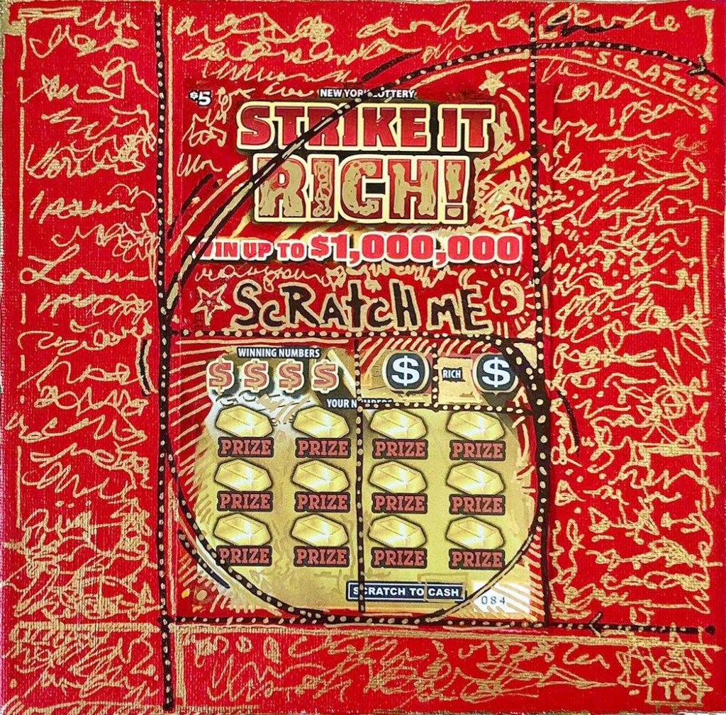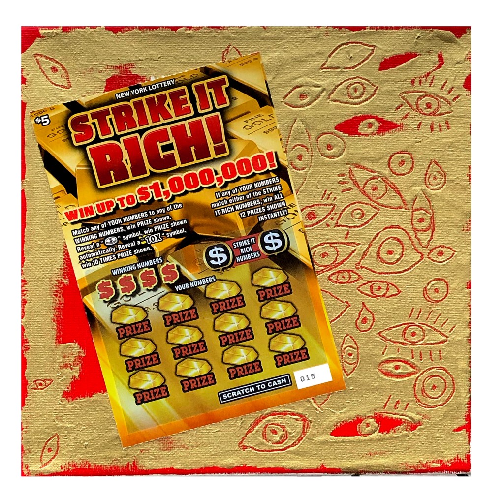 Scratch Me 8″ x 8″ Gold ink ticket on canvas